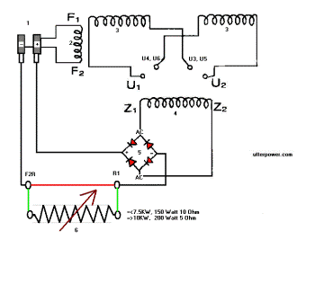 5. If you got this far, you’ve proved you have a correct voltage from the Z winding, that it is being converted to DC by the diode bridge, and that you have a proper resistance in the field winding. If you have an amp meter that can accurately measure 2 amps AC , place the meter in series between the lead Z1 and the diode bridge terminal screw. Check all the brushes, slip rings and connections. Start the set and run it up to 1800 RPMs. The meter should read approx 2.1 amps if true, go to step 6. If you’re reading was different, verify your meter, the RPMs, and the field excitation circuit, also look at the diode bridge for a flaw. read out the diodes with the ohm meter and prove it good.