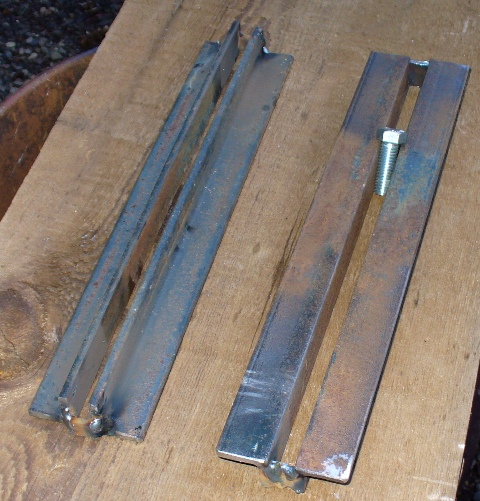 Making slotted holes is a problem if you don’t have a mill, in this step we make generator mounts the easy way by adding a wrap of masking tape around the bolts and then placing them in between as spacers. We clamp it together and add a small scrap of metal to each end and weld it to keep the proper width in the slot.