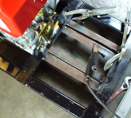Here’s why you wait until you have the components BEFORE you fab. We place the generator in position and make sure it slides smoothly back and forth before we weld. There’s no guess work with this method. If the generator manufacturer changed the hole location on the mountingtabs and didn’t update the online drawings, you won’t be inconvenienced.