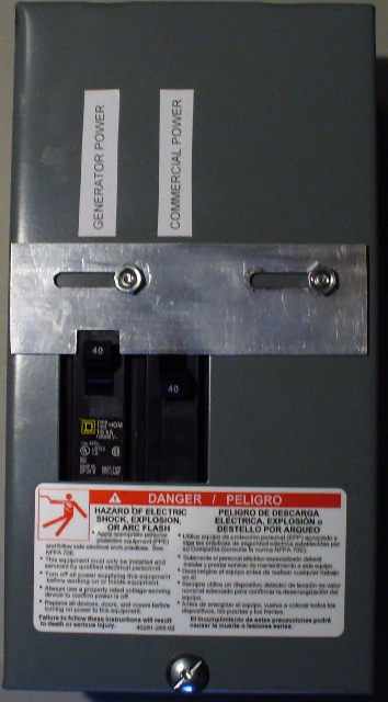 Transfer switches with interlocks can save you a lot of trouble as they can be used for a lot of things, and need not cost a lot of money. Make the plate yourself, or add $6 to a PMG order and get one from me. I suggest 10-32 screws for mounting. Home Depot is one store that carries the Square D series home boxes.