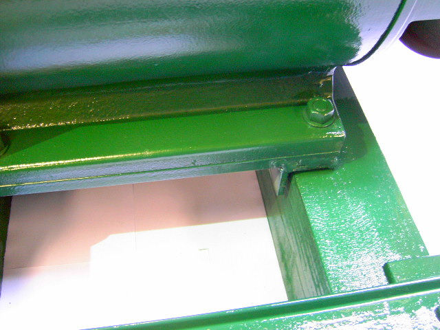 In the pictures below, you see a bar across the front used as a spreader, this was placed to assure the frame is parallel and it also serves as a place to tie in the tensioner for the belt.